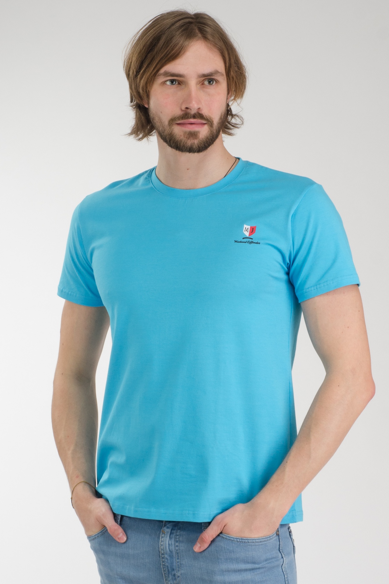 М006 ФУТБОЛКА ГОЛУБАЯ МУЖСКАЯ, S, ЦЕНА - 450-00
