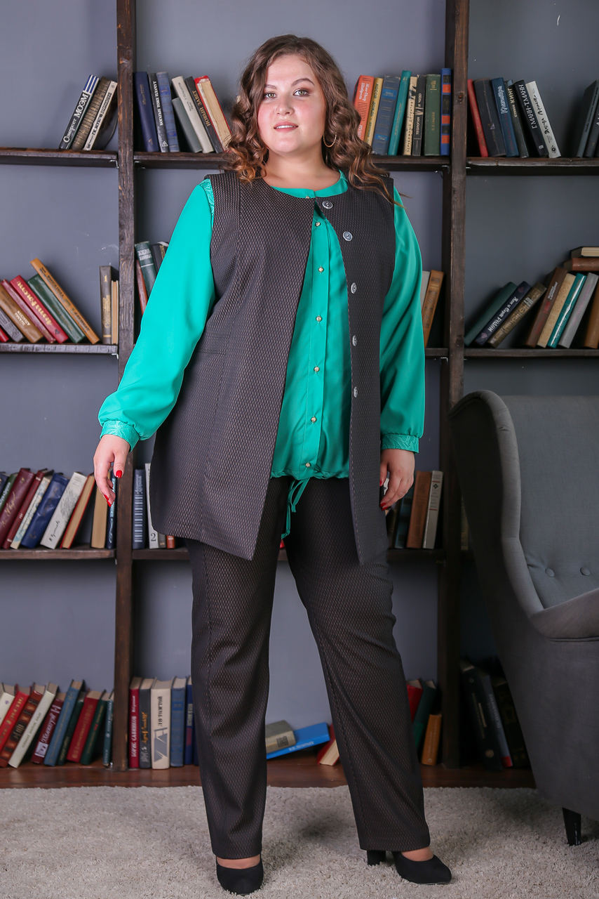 Описание ткани: Жаккардовое смесовое полотно сложного плетения нитей разной фактуры и цвета. Так же обладает всеми перечисленными ранее свойствами, граммаж 210 гр на кВ.м. Состав ткани 60 % вискозы; 35% пэ; 5% эластана. Данная ткань имеет богатую, лицевую поверхность с матовым отливом и узором мелкая елочка. Актуальный орнамент, благородная комбинация цветов, черного с кофейным; черного с индиго; черного с малахитом, позволяет шить из этой ткани шикарные брючные комплекты для офиса